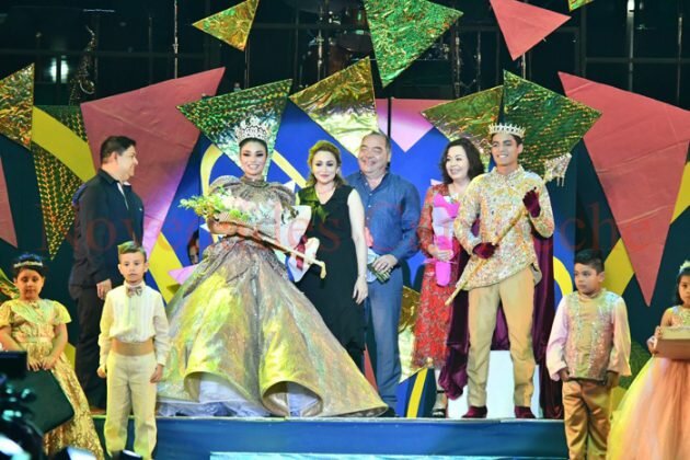 Para su primera pasarela como soberanos de esta institución educativa lucieron sus trajes dorados. El vestido de la reina fue diseñado y confeccionado por Víctor y Jesse; mientras que el rey lució un traje con diseño y confección de Olmedo+Gahona.