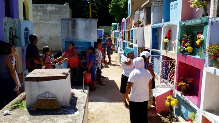 Desde temprana hora del sábado se apreció una estricta vigilancia en las calles aledañas al panteón de esta cabecera dirigida por el Comandante operativo Ángel Guadalupe Silva Cach, quien aseguró que se garantizaría la tranquilidad de los calkinienses y visitantes que con flores, tiñeron de colores el camposanto para encender, al pie de la tumba de sus seres queridos, una veladora para rezar por su eterno descanso.
