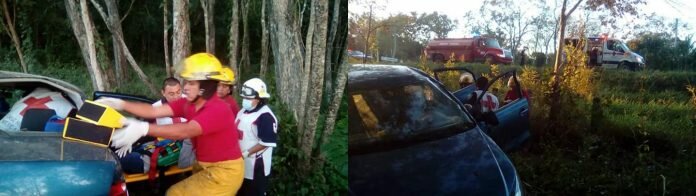 Por transitar a alta velocidad, el conductor de un vehículo con placas de Tabasco perdió el control del volante para dar volteretas y abandonar la superficie de rodamiento con cinco pasajeros a bordo que tuvieron que ser trasladados al hospital por diversas lesiones.