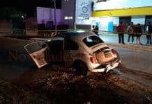 El auto terminó incrustado en el poste propiedad del Ayuntamiento, con severos daños en la parte frontal izquierda.