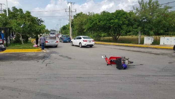 Un repartidor de comida resultó lesionado después de chocar contra un automóvil que transitaba a la altura de la glorieta de la Cápsula del Tiempo.
