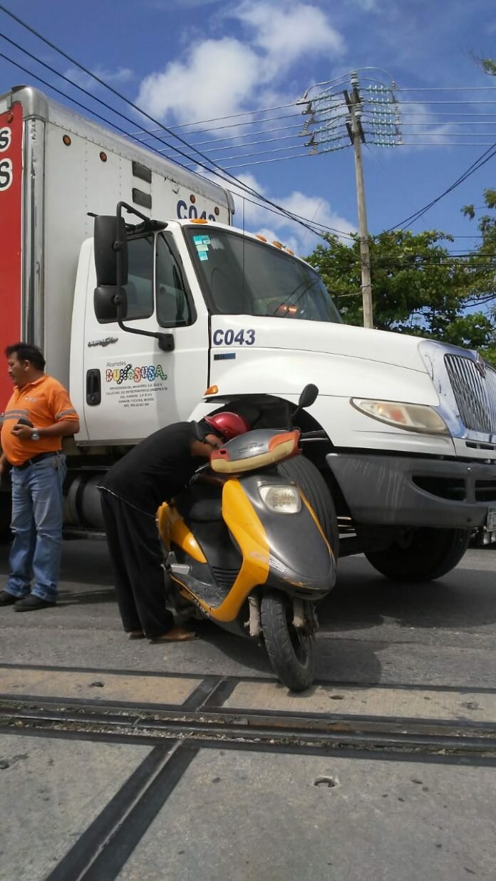 Y es que, sobre el carril derecho de la avenida Colosio transitaba el camión tortón con matrícula de circulación YP-7702-A de Yucatán., propiedad de una conocida empresa de abarrotes; mientras que, sobre el carril izquierdo viajaba la motocicleta Italika, con placas LEU1P.