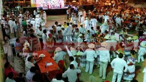 Niños, jóvenes y adultos vestidos con el típico atuendo regional ejecutaron cada melodía que en ese momento interpretaba la prestigiada orquesta jaranera “Noh Beh”, la cual no paró de tocar por las peticiones de la amable concurrencia que se dio cita para disfrutar de una calurosa noche animada con el sonar de los voladores y de luces multicolor.