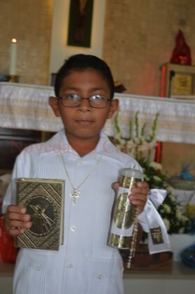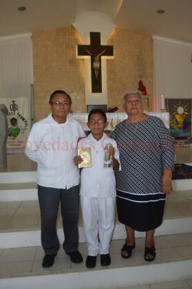 Patricio Efraín Yeh Hay recibió el cuerpo y la sangre de Cristo durante la celebración de su primera comunión, que tuvo lugar en la Iglesia de Guadalupe Tepeyac, la cual fue oficiada por el Presbítero Alfonso Reyes de Atocha. Estuvo acompañado de sus padres, Nestor Yeh Miranda y Roxana Hay Hau, así como de sus padrinos, Efraín Hay Amaya y Esther Hau Ayuso.