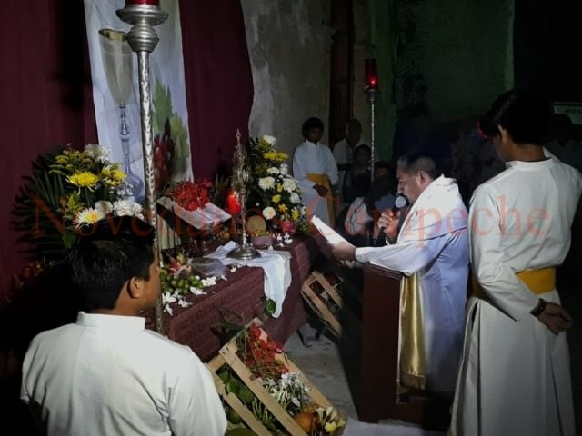 La celebración fue encabezada por el presbítero Juan Eliodoro Kantún Huchín quien bendijo el cuerpo y la sangre de Cristo en el Santísimo Sacramento de la Eucarística cuyo origen data del siglo XIII por la revelación que dijo haber recibido la religiosa Juliana de Mon. Urbano VI promulgó la bula.